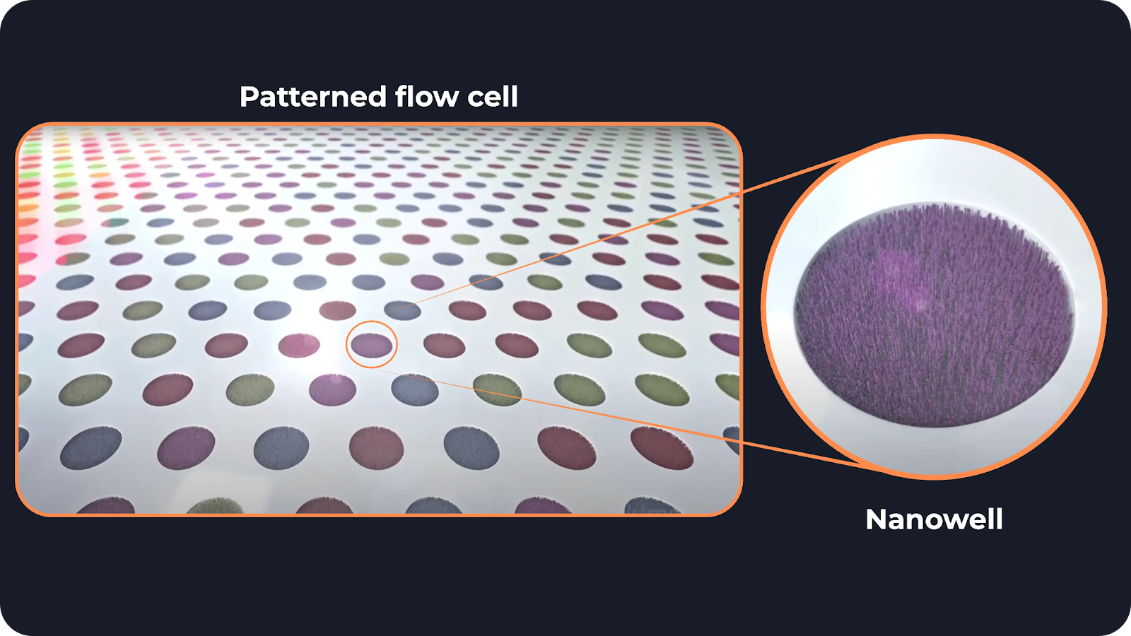 At the heart of Illumina’s approach is its patterned flow cell technology. Think of these flow cells as a grid of microscopic wells, spaced just 0.6 micrometers apart. As a reference, a human cell has a size of 5–20 micrometers.