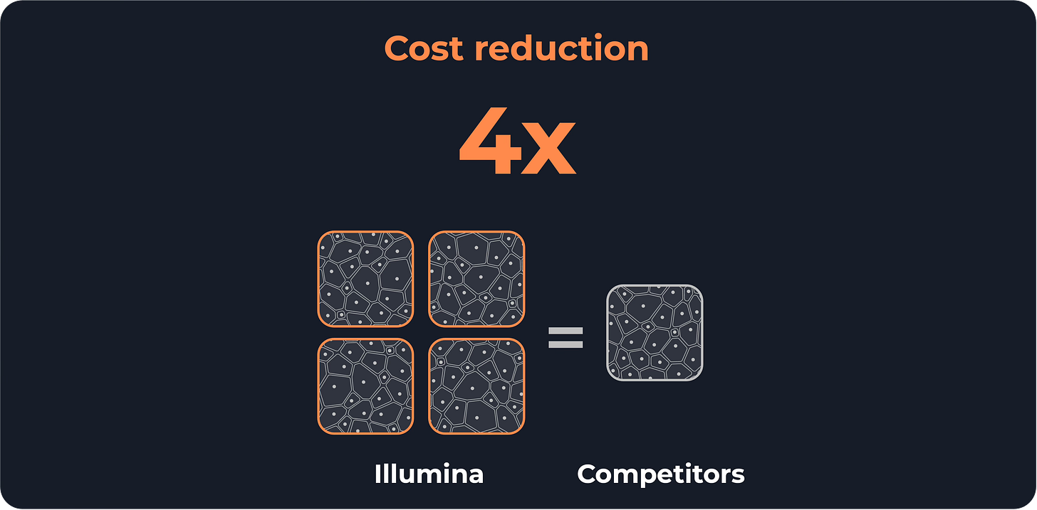 Illumina also claims to lower the cost per tissue area by 4x, compared to other sequencing-based spatial transcriptomics technologies.