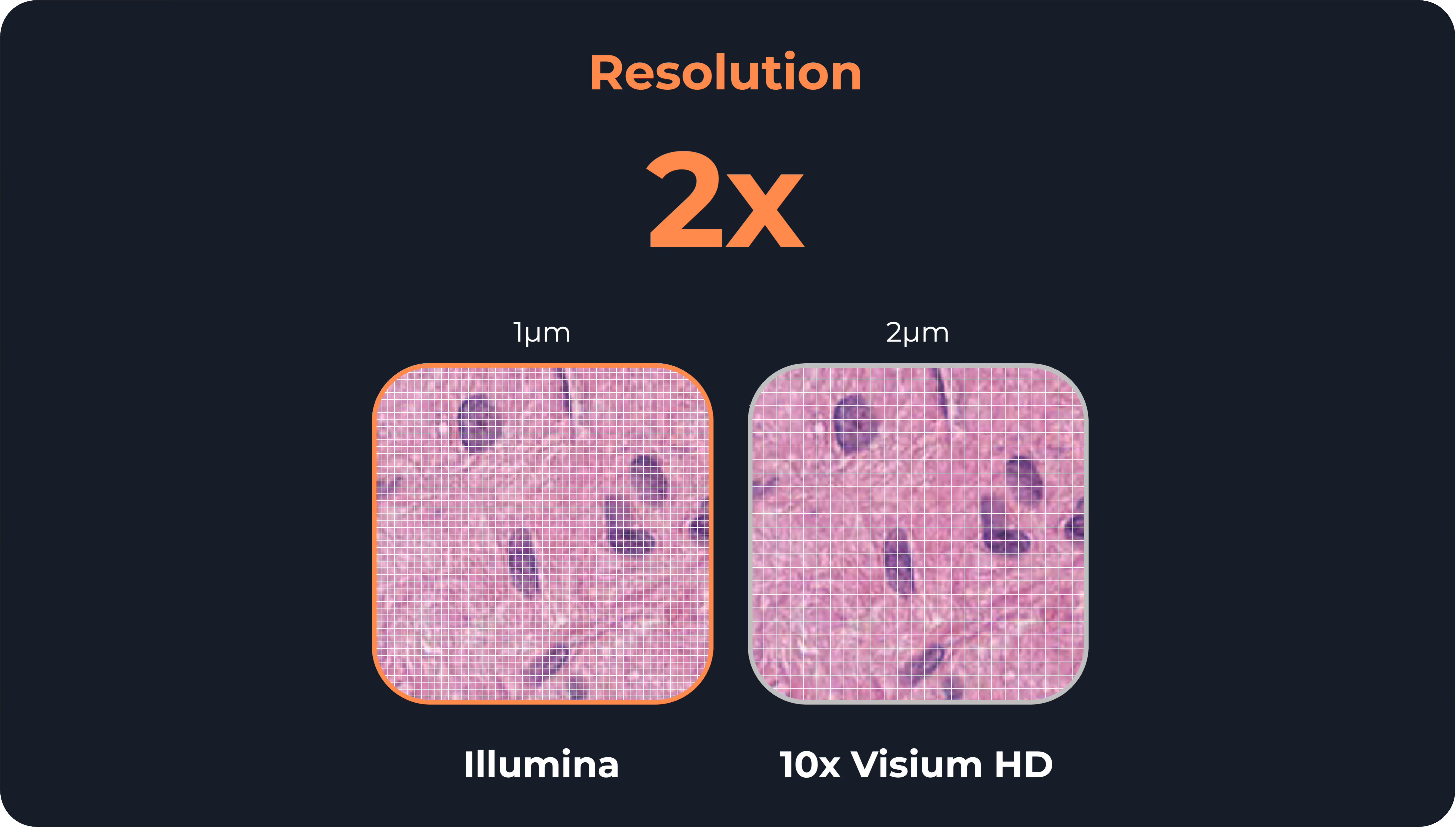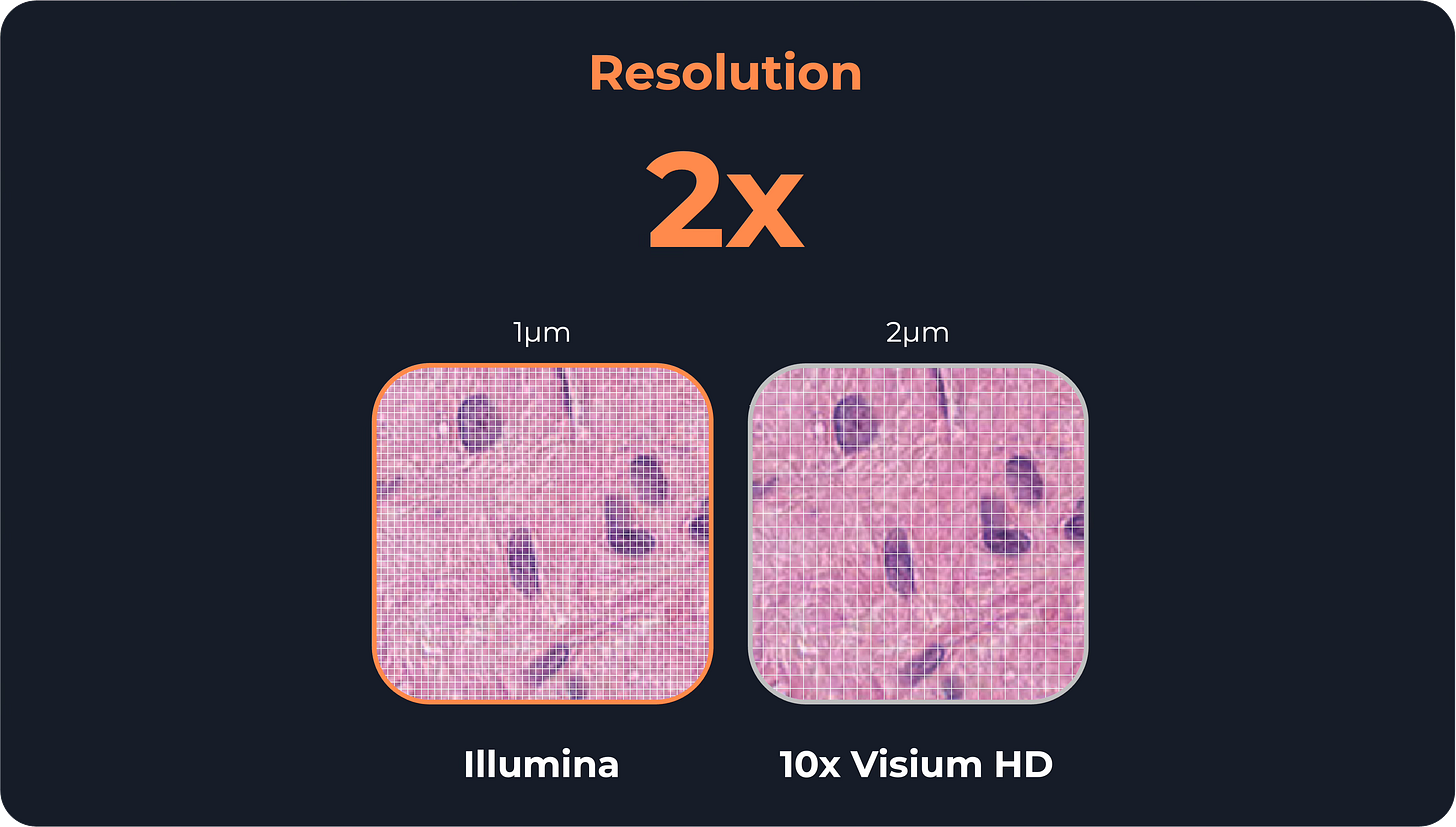 Illumina claims 1 μm resolution, twice as sharp as Visium HD’s 2 μm