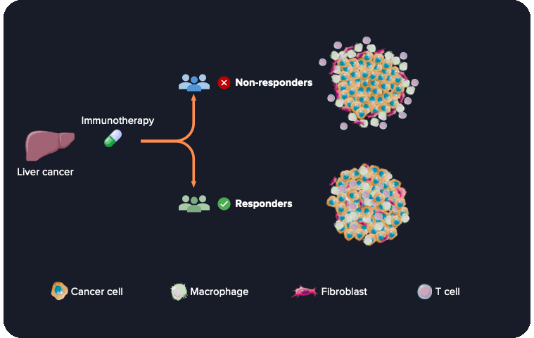 A recent study6 discovered the dynamics between fibroblasts and macrophages in these tumors. The authors gave immunotherapy to liver cancer patients and classified the patients into two groups: responders and non-responders.